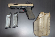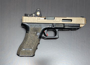 Se vende Glock 17 de Tokyo Marui con kit Salient Arms de Glock 34. Se entrega con 2 cargadores originales (uno de ellos pierde algo de gas) y pistolera de kydex.